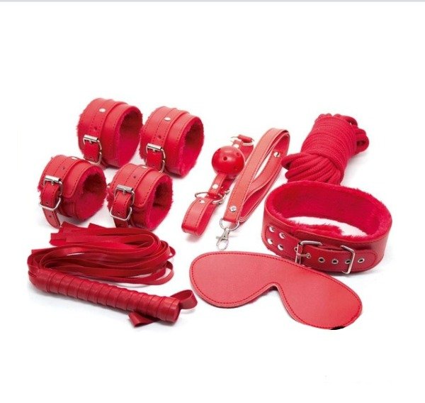 Convierte tu dormitorio en un patio de recreo erótico con este increíble kit de Bondage para principiantes. Todo lo que necesitas para explorar tus fantasías fetichistas está incluido en este kit! Las posibilidades son infinitas ... y también lo es la diversión! Incluye: Látigo, collar, soga, esposas forradas de peluche, antifaz, mordaza, esposas.